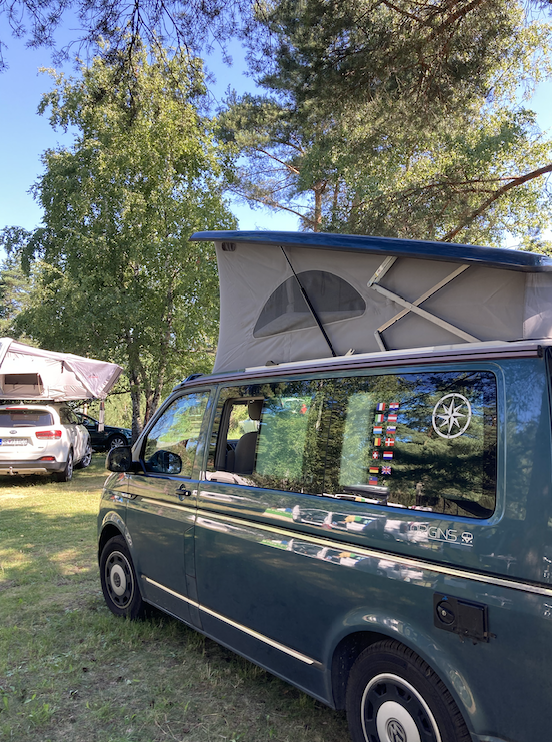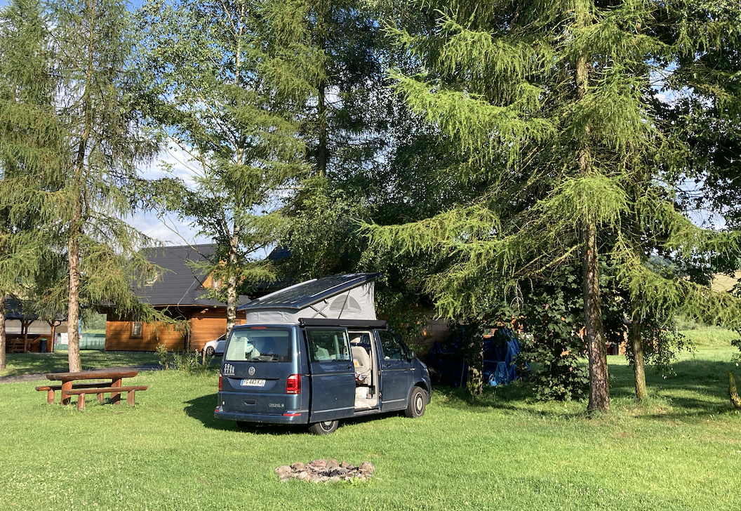 Une des grandes questions quand on part en van concerne les spots où passer la nuit ! Pour 1/3 du séjour, nous avons dormi sur des parkings (référencés sans surprise dans l’application Park4Night) et nous n’avons pas rencontré de problèmes particuliers. Il faut juste faire attention dans les (nombreuses) zones de réserves naturelles, où la réglementation est assez stricte sur le sujet, surtout dans le nord de la Tchéquie. Il y a peu d’aires de stationnement de camping-car (cela n’a pas été un problème pour nous, car avec le van on évite plutôt ces catégories d’emplacement) et nous avons privilégié les campings pour la majorité des autres nuits (avec les enfants, c’est pratique d’avoir un endroit sécurisé et souvent une aire de jeu).