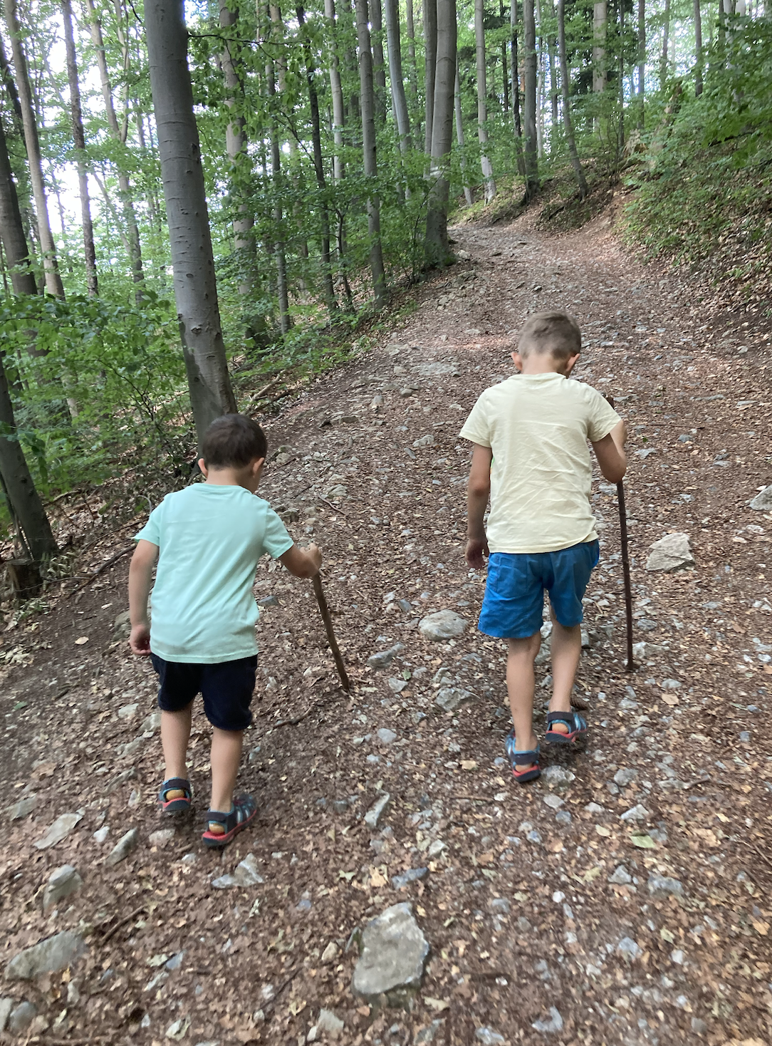 On avait repéré plusieurs randonnées et finalement on choisit le labyrinthe de pierre de Besedice. GROS coup de coeur ! Les paysages sont vraiment impressionnants – on se sent tout petits ! Et la marche est très ludique, on passe entre les gros blocs de pierre. Globalement c’est bien sécurisé mais il y a quand même quelques endroits où on surveillait de près les enfants. Depuis le parking (qui est assez petit : en arrivant à 11h on a dû attendre une dizaine de minutes pour qu’une place se libère), il faut remonter un peu puis les circuits jaune et bleu permettent de faire le tour.
