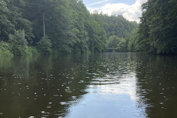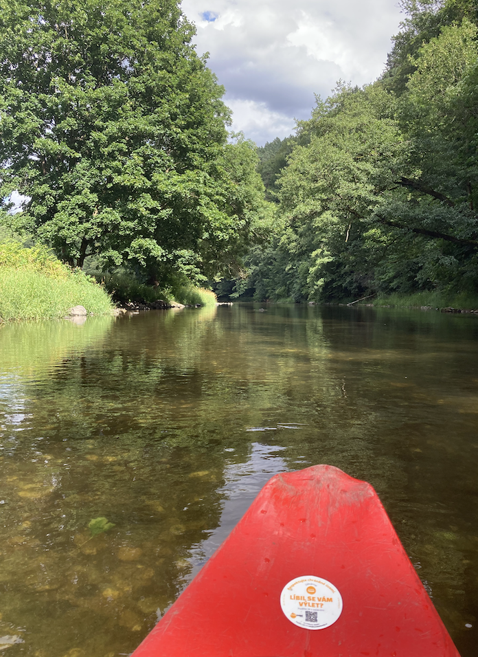 Il y a plein d’autres balades du même style qui ont l’air très sympa, mais pour diversifier un peu les activités, le lendemain on choisit le canoë sur la Jizera. Depuis le camping, on prend le train à Dolanky jusqu’à Lisny, d’où on descendra la rivière jusqu’au camping. Malgré un petit couac au départ (c’est le camping qui avait réservé pour nous mais personne n’était là à l’heure prévue..), on part pour 2 heures de descente. A part un « toboggan » au début du parcours, le débit est assez calme et on est assez contents d’être légers dans notre canoë, car certains rafts devaient pousser vu le niveau d’eau à certains endroits. Mais surtout, il y a très peu de passage et on se sent un peu seuls au monde, au milieu de la nature. Même les quelques gouttes de pluie ne nous dérangent pas et rendent ce moment un peu plus poétique.