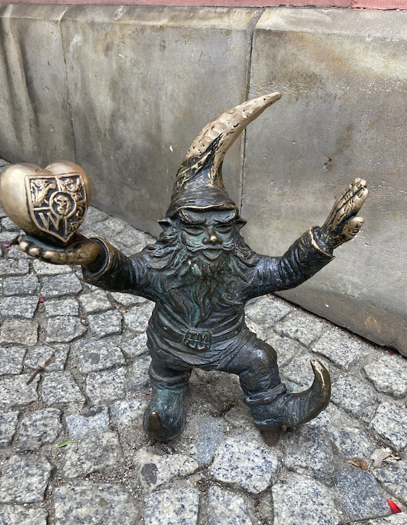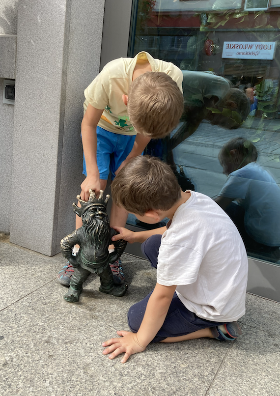 Mais surtout, la ville est connue pour ses « nains » : une première sculpture y a été érigée en 1981, en l’honneur d’un mouvement opposé au régime communiste de l’époque, et depuis de nombreuses sculpture ont été installées, chacune faisant la plupart du temps référence au bâtiment à côté de laquelle elle est positionnée. La visite de la ville est donc très agréable car les enfants sont bien occupés à repérer les nains et ils ne se plaignent pas de devoir marcher !