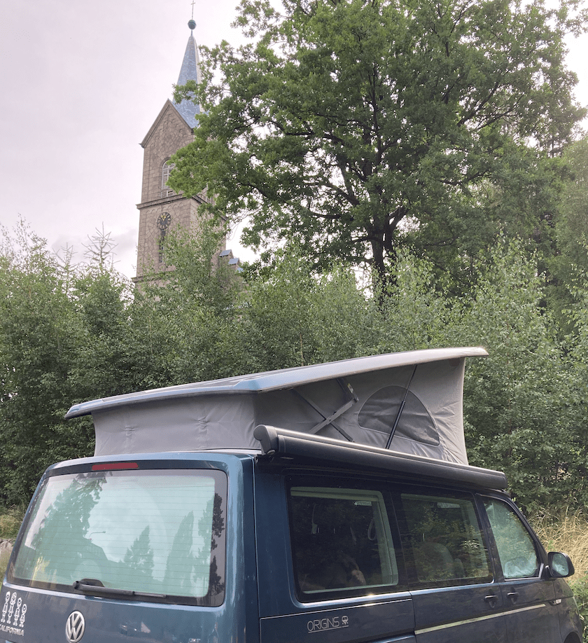Après avoir pensé dormir à Wroclaw, on fait finalement le choix de repartir dans la soirée pour avancer un peu vers la Tchéquie et on s’arrête non loin de la frontière à Szklarska Poręba. Le parking à côté de l’église est parfait : calme et avec des toilettes !