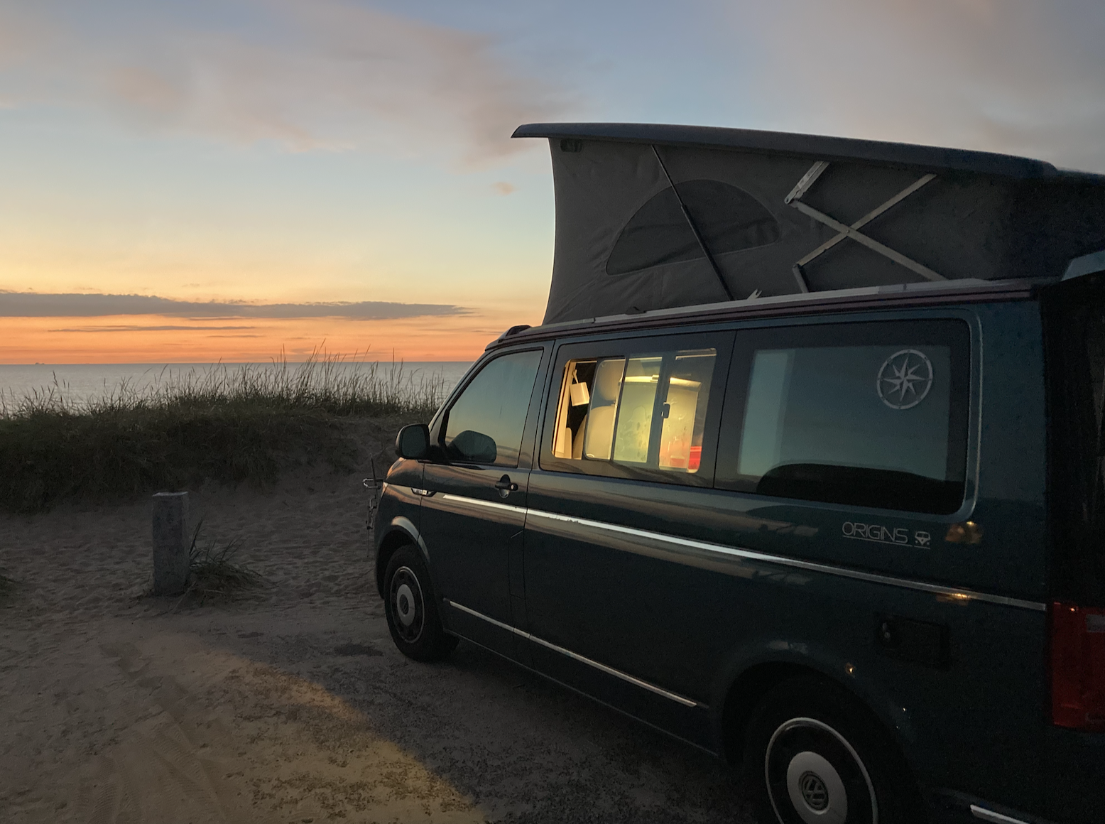 Au Danemark, nous n’avons pas fait un seul camping mais avons alterné des nuits sur des parkings ou des ports, bien souvent équipés de toilettes et de douches. La perle du séjour : un parking en bord de mer au nord du pays. On se sent vraiment chanceux de pouvoir côtoyer la nature de cette façon (et ce sentiment semble partagé car les lieux sont très propres, chacun respecte les endroits où il est possible de passer la nuit).