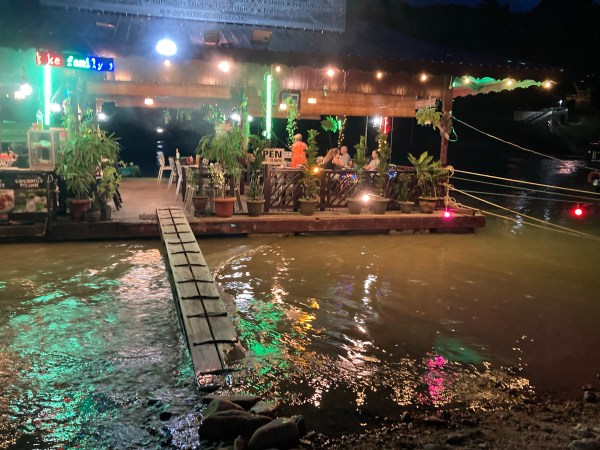 Il y a plein de restaurants flottants sur le bord de la rivière, c’est là où on a principalement mangé. Arrivant des îles Perenthian, les prix nous ont paru bien bas (autour de 80 RM pour un repas copieux à 4) !