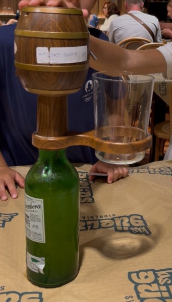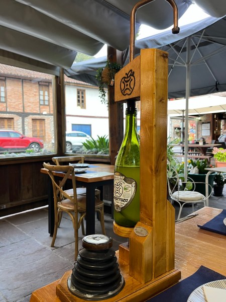 Ça a été assez typique de découvrir le cidre des Asturies, et surtout la façon de le servir ! On a vu plein de machines différentes pour le projeter dans le verre, mais le plus traditionnel reste le service en levant le bras au dessus de la tête (on s’y est essayé, c’est pas facile !). D’ailleurs, c’était une scène assez hallucinante de voir des groupes de jeunes verser leur cidre sur leurs canoës-kayaks au milieu de la Sella…